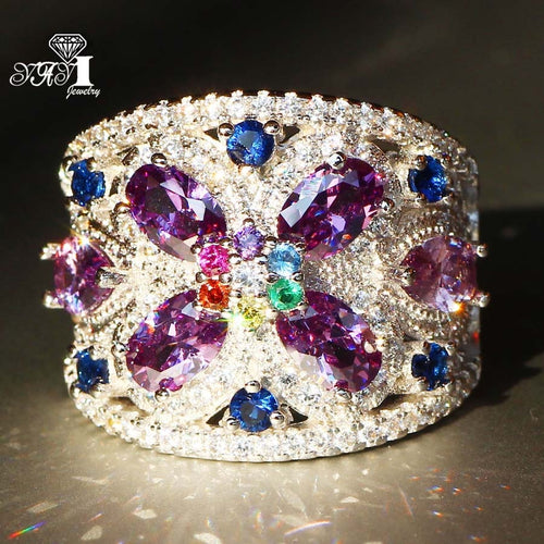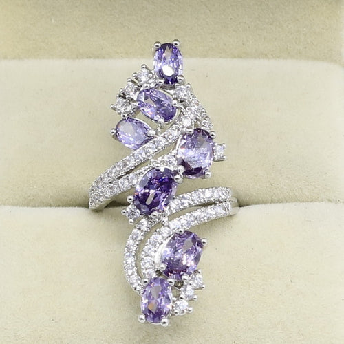 White Topaz Purple Amethyst Sterling Silver Ring